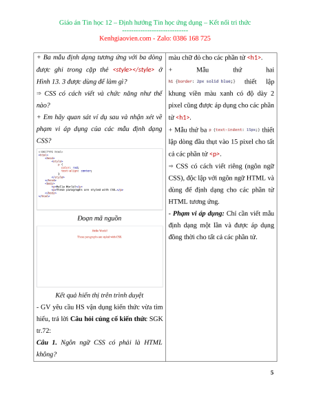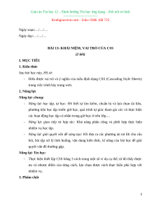 BÀI 13: KHÁI NIỆM, VAI TRÒ CỦA CSS (2 tiết) I. MỤC TIÊU 1. Kiến thức