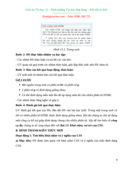 a) Mục tiêu: HS được làm quen với khái niệm CSS và ý nghĩa của mẫu định dạng CSS. 3