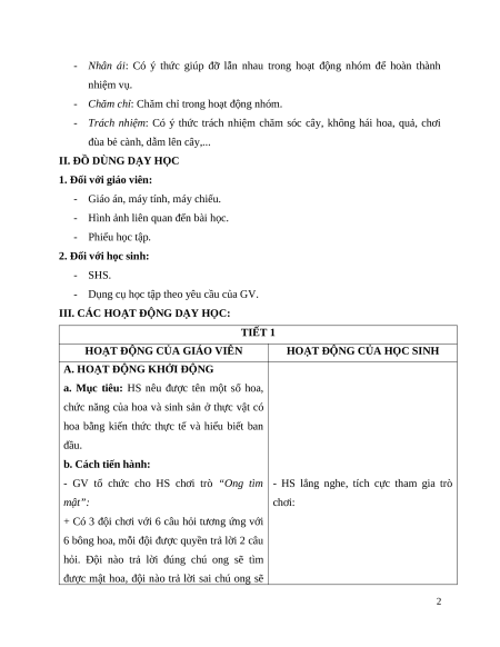 - Đặt được câu hỏi về sự sinh sản của thực vật có hoa. 3. Phẩm chất: 1