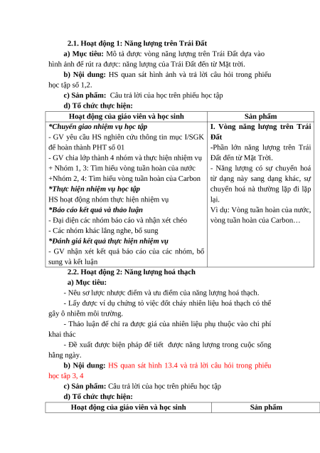 2.1. Hoạt động 1: Năng lượng trên Trái Đất