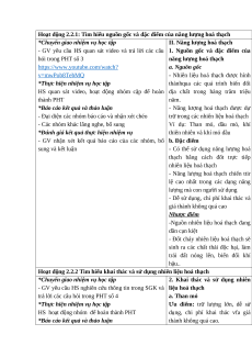 - GV yêu cầu HS quan sát video và trả lời các câu 1. Nguồn gốc và đặc điểm của hỏi trong PHT số 3