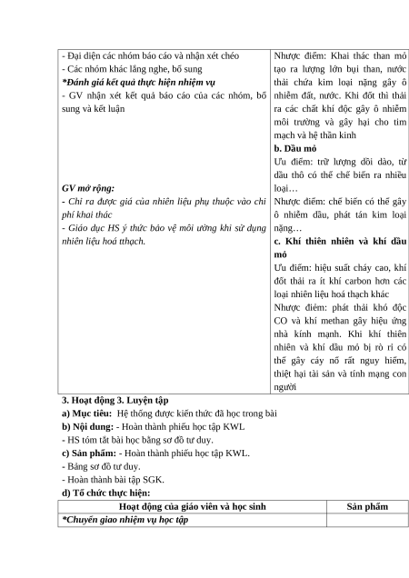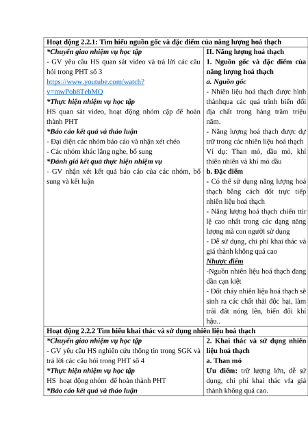 2.2. Hoạt động 2: Năng lượng hoá thạch a) Mục tiêu: