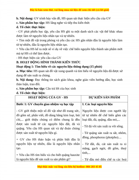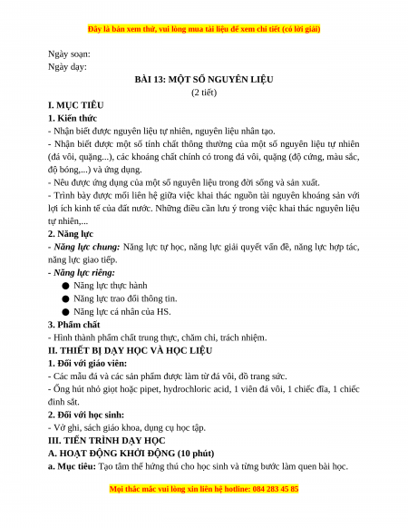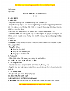 BÀI 13: MỘT SỐ NGUYÊN LIỆU (2 tiết) I. MỤC TIÊU 1. Kiến thức