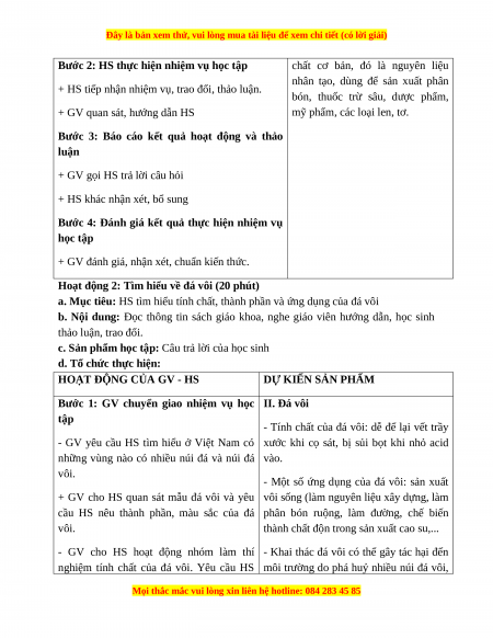 Hoạt động 2: Tìm hiểu về đá vôi (20 phút)