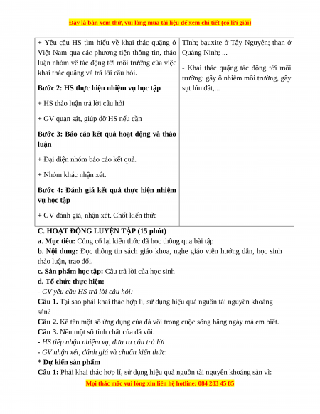 - Trình bày được mối liên hệ giữa việc khai thác nguồn tài nguyên khoáng sản với