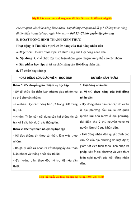 Bước 1: GV chuyển giao nhiệm vụ học tập 1. Hội đồng nhân dân