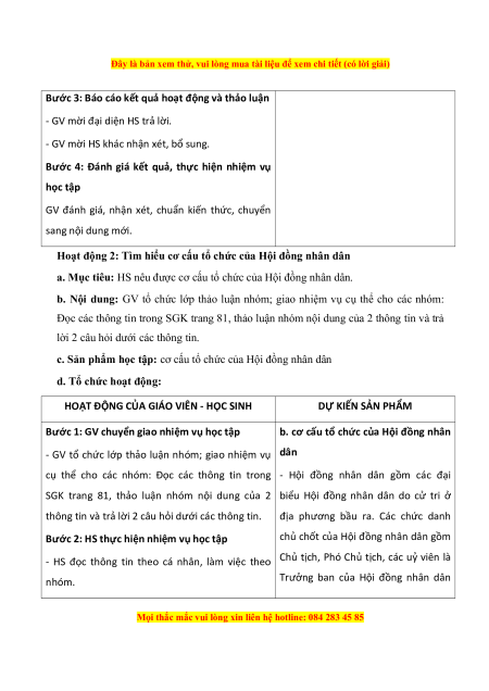 + Cá nhân: Đọc các thông tin 1, 2 trong SGK trang - Hội đồng nhân dân các cấp do cử tri 80, 81.