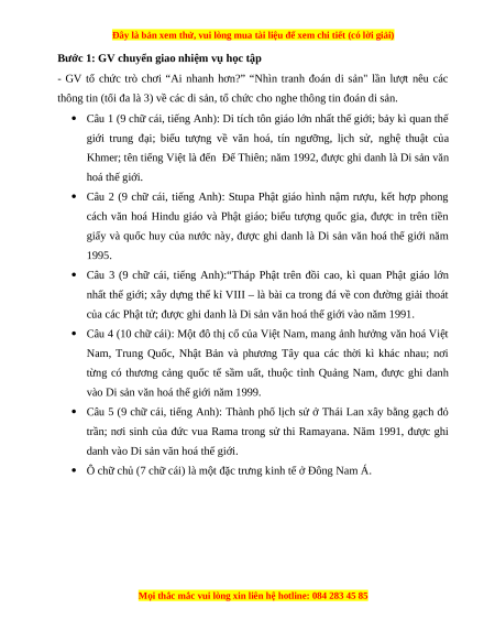 thông tin (tối đa là 3) về các di sản, tổ chức cho nghe thông tin đoán di sản.