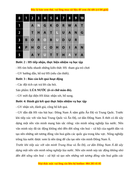 + Sưu tầm và sử dụng được tư liệu lịch sử để tìm hiểu cơ sở hình thành nền văn minh Đông Nam Á.