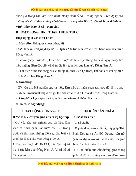 Giáo án Bài 13 Lịch sử 10 Chân trời sáng tạo (2024): Cơ sở hình thành văn minh Đông Nam Á cổ - trung đại