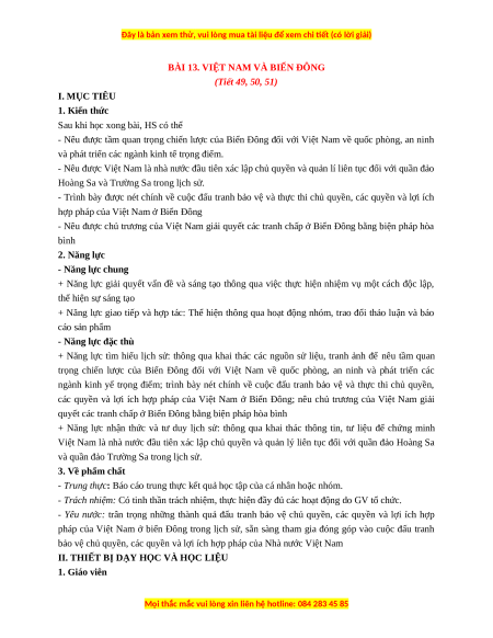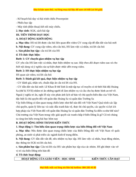 - Nêu được chủ trương của Việt Nam giải quyết các tranh chấp ở Biển Đông bằng biện pháp hòa bình 2. Năng lực - Năng lực chung