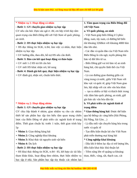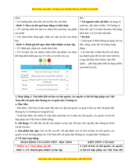 - Bước 1: GV chuyển giao nhiệm vụ học tập với Việt Nam