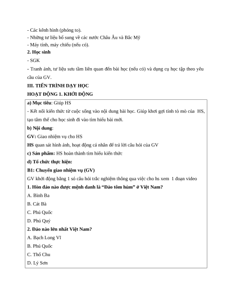 1. Hòn đảo nào được mệnh danh là “Đảo tôm hùm” ở Việt Nam? A. Bình Ba B. Cát Bà C. Phú Quốc D. Phú Quý
