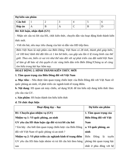 a. Mục tiêu: - Nêu được tầm quan trọng chiến lược của Biển Đông đối với Việt Nam về