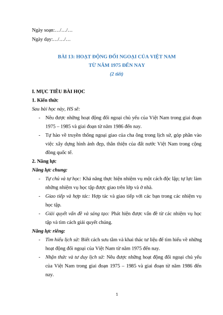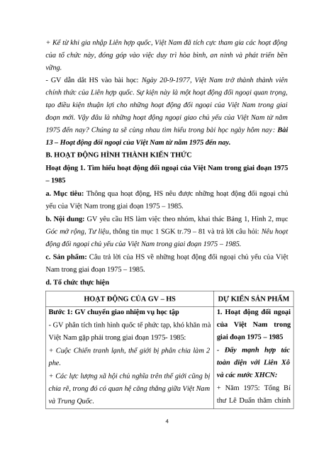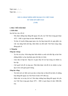 Giáo án Bài 13 Lịch sử 12 Cánh diều (2024): Hoạt động đối ngoại của Việt Nam từ năm 1975 đến nay