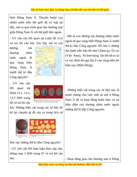 Giáo án Bài 13 Lịch sử 6 Chân trời sáng tạo (2024): Giao lưu thương mại và văn hóa ở Đông Nam Á trước thế kỉ X