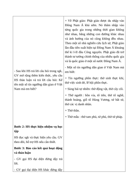 Bước 1: GV chuyển giao nhiệm vụ 1. Tín ngưỡng, tôn giáo học tập