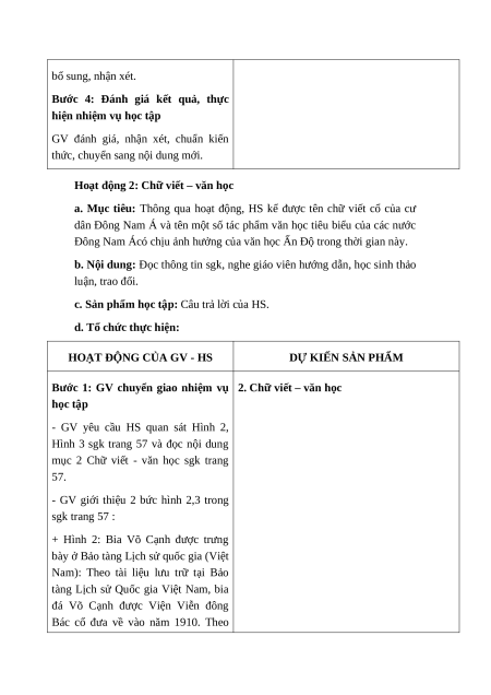 Giáo án Bài 13 Lịch sử 6 Kết nối tri thức (năm 2024): Giao lưu văn hóa ở Đông Nam Á