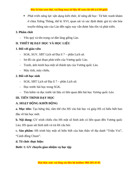 - Tìm kiếm và đọc trước tài liệu có liên quan đến bài học Vương quốc Lào.