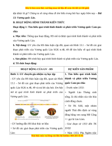 Giáo án Bài 13 Lịch sử 7 Chân trời sáng tạo: Vương quốc Lào (phiên bản 2)