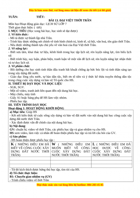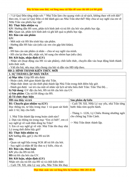 GV: chuẩn bị; video về thời Trần, các phiếu học tập và giao nhiệm vụ cho HS.