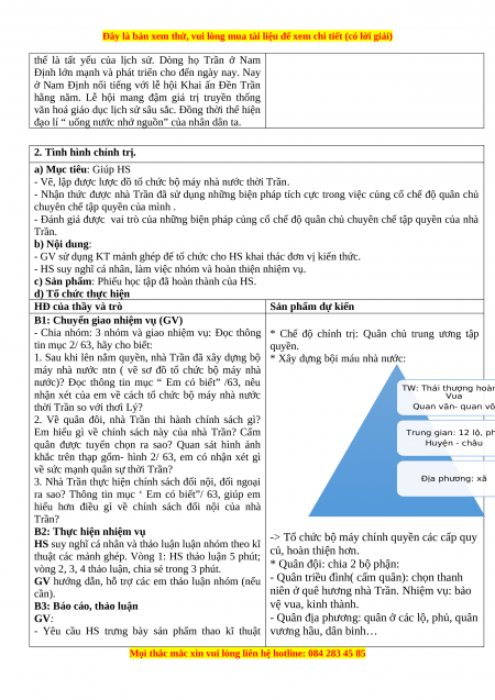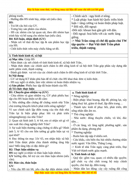 - Đánh giá được vai trò của những biện pháp củng cố chế độ quân chủ chuyên chế tập quyền của nhà Trần. b) Nội dung: