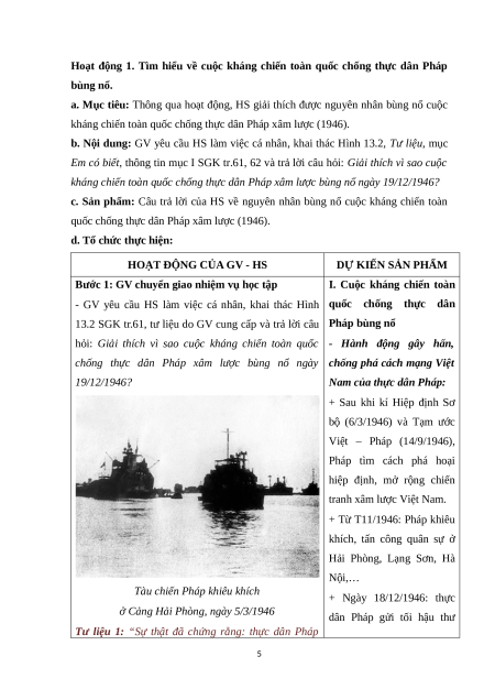 Giáo án Bài 13 Lịch sử 9 Cánh diều: Việt Nam từ năm 1946 đến năm 1954