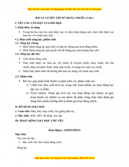 BÀI 13: LUYỆN TẬP SỬ DỤNG CHUỘT (1 tiết )