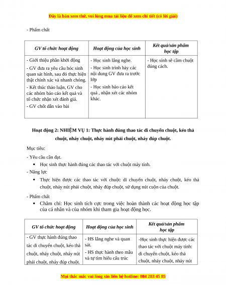 chuột, nháy nút phải chuột, nháy đúp chuột, sử dụng nút cuộn của chuột. - Phẩm chất