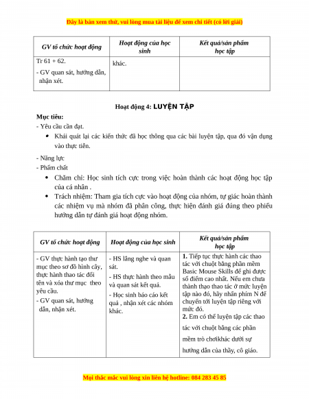 Học sinh thực hành đúng các thao tác với chuột máy tính. - Năng lực