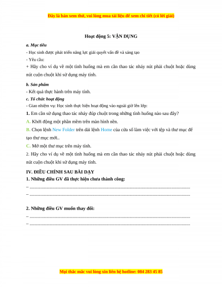 IV. ĐIỀU CHỈNH SAU BÀI DẠY