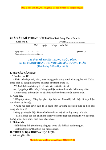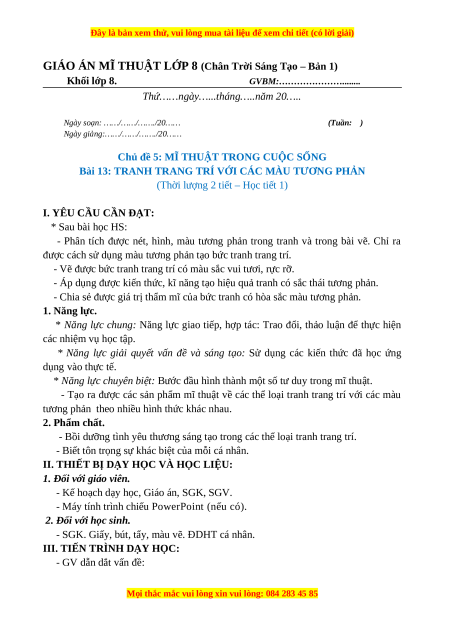 GIÁO ÁN MĨ THUẬT LỚP 8 (Chân Trời Sáng Tạo – Bản 1)