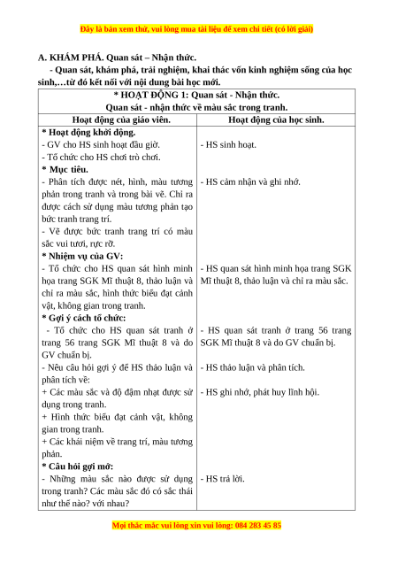 họa trang SGK Mĩ thuật 8, thảo luận và Mĩ thuật 8, thảo luận và chỉ ra màu sắc.