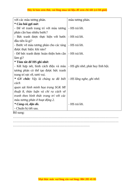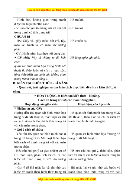 + Các khái niệm về trang trí, màu tương phản. * Câu hỏi gợi mở:
