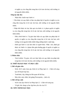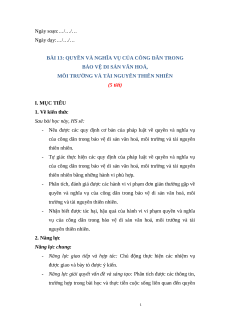 Giáo án Bài 13: Quyền và nghĩa vụ của công dân trong bảo vệ di sản văn hoá KTPL 12 Chân trời sáng tạo