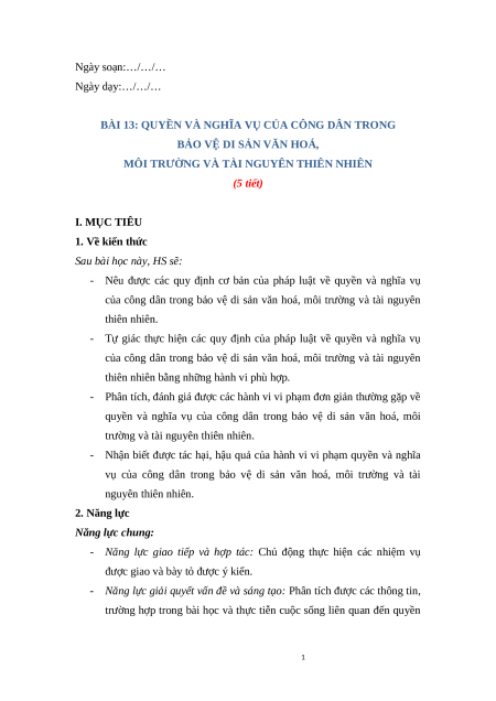 vụ của công dân trong bảo vệ di sản văn hoá, môi trường và tài nguyên thiên nhiên. 2. Năng lực