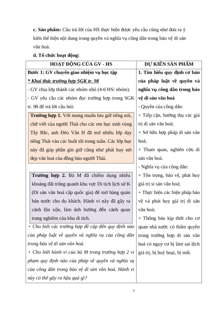 quyền và nghĩa vụ công dân trong bảo vệ di sản văn hoá. b. Nội dung: