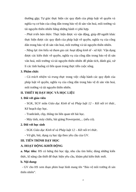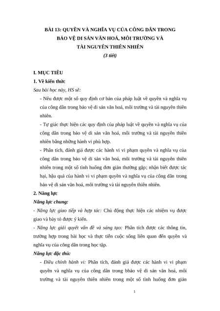 bảo vệ di sản văn hoá, môi trường và tài nguyên thiên nhiên. 2. Năng lực