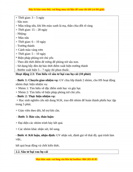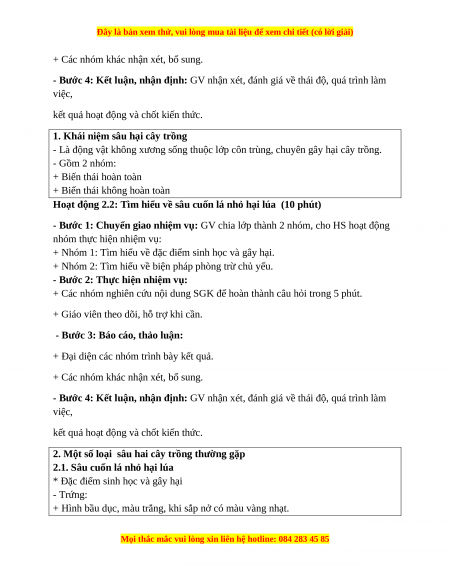 - Nhận thức công nghệ: biết đặc điểm sâu hại và biện pháp phòng trừ.