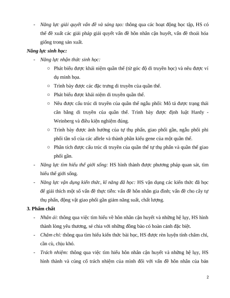 - Nhân ái: thông qua việc tìm hiểu về hôn nhân cận huyết và những hệ lụy, HS hình