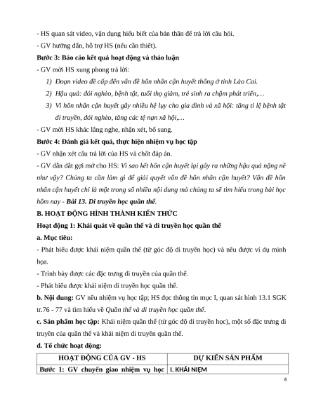 Giáo án Bài 13 Sinh học 12 Cánh diều: Di truyền học quần thể