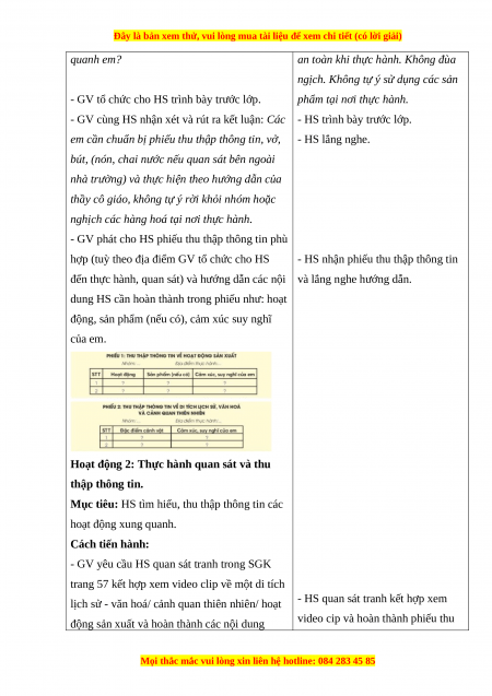 - Thực hành quan sát, tìm hiểu các hoạt động sản xuất và di tích lịch sử, văn hoá,