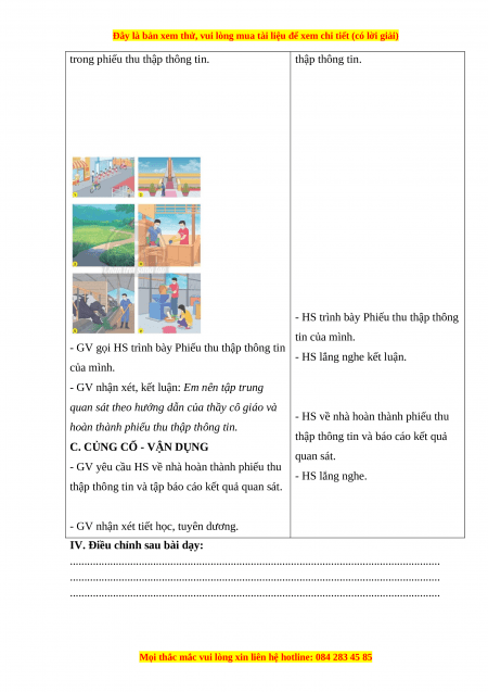 hoàn thành phiếu thu thập thông tin.