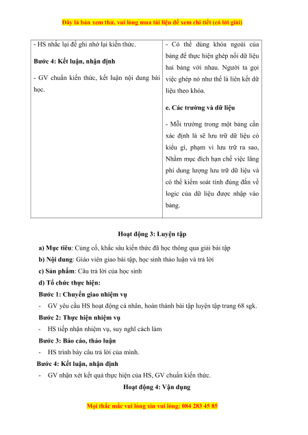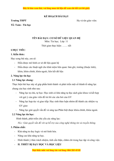 Đây là bản xem thử, vui lòng mua tài liệu để xem chi tiết (có lời giải) KẾ HOẠCH BÀI DẠY Trường THPT Họ và tên giáo viên: Tổ: Toán - Tin học