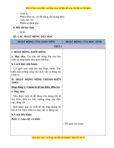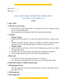 CỦA THỰC VẬT VÀ ĐỘNG VẬT (4 tiết) I. MỤC TIÊU