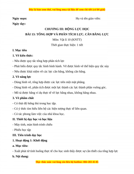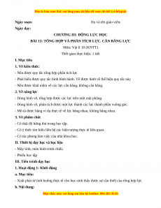 Giáo án Bài 13 Vật lí 10 Kết nối tri thức (2024): Tổng lực và phân tích lực. Cân bằng lực