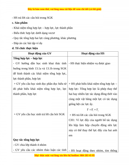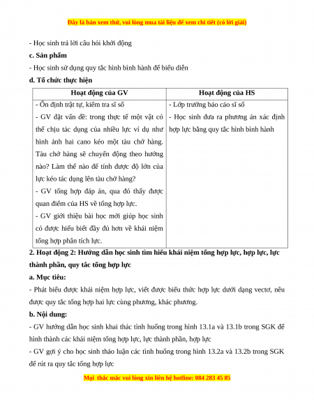 - Xuất phát từ tình huống thực tế cho học sinh thấy được sự cần thiết của tổng hợp lực b. Nội dung: