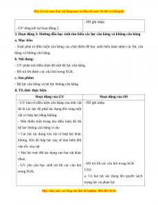 - Mô tả được bằng ví dụ thực tế về lực bằng nhau, không bằng nhau. 3. Về phẩm chất