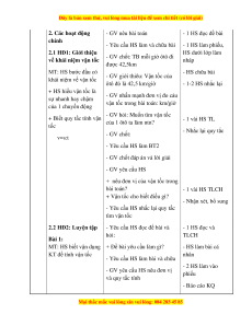 - GV chốt đáp án và lời giải - GV yêu cầu HS + nêu đơn vị của vận tốc trong bài toán? - 1 vài HS TLCH
