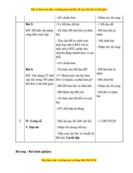 - Nêu lại quy tắc tính vận tốc - 1-2 HS TLCH V. Dặn dò